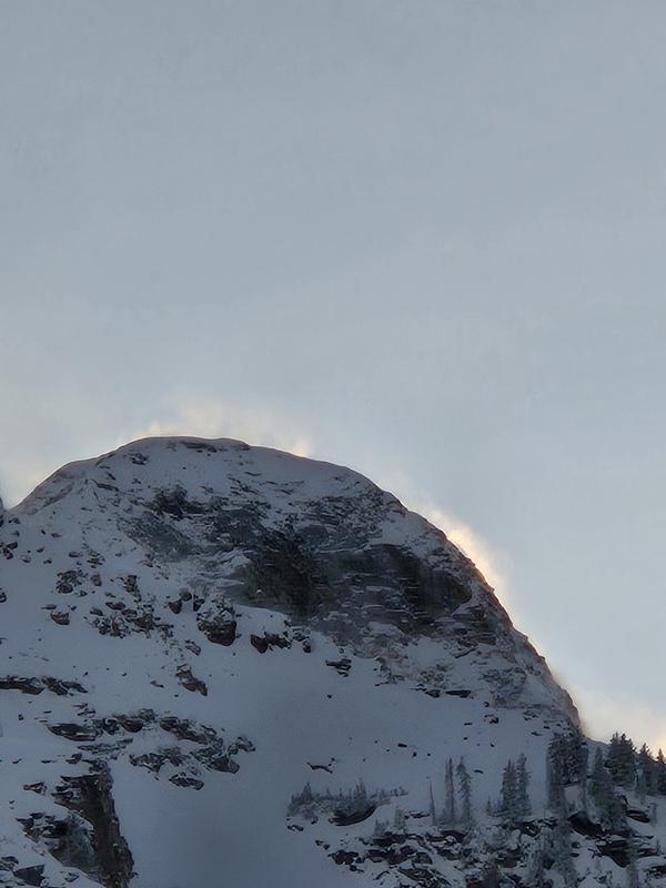 S2 precip from 9 to noon. About 7 inches of new low density snow above lake Blanche. We saw blowing snow off dromedary and o'sullivan once the clouds lifted around 4. Lovely evening.