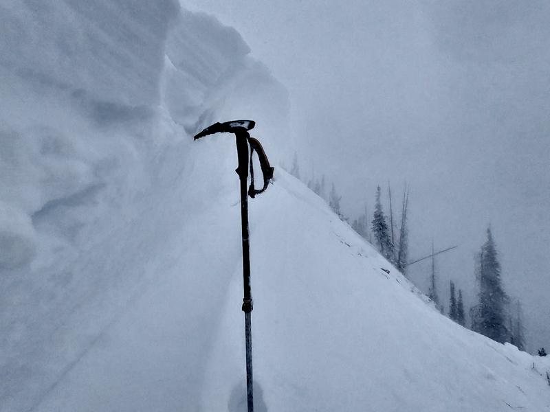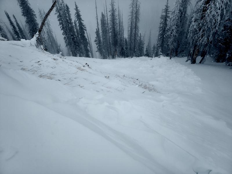 I discovered this natural slide while skinning up Hoyt. Visibility was low I didn’t care to ski down the path to inspect. The slide appeared limited to the cornice and all the snow to the ground just below in the wind zone. I analyzed a photo of the runout zone, and the debris did not appear to make it to the bottom. My experience has been that the debris would be hung up in trees just out of view or just a little lower in the lower angle bowl.