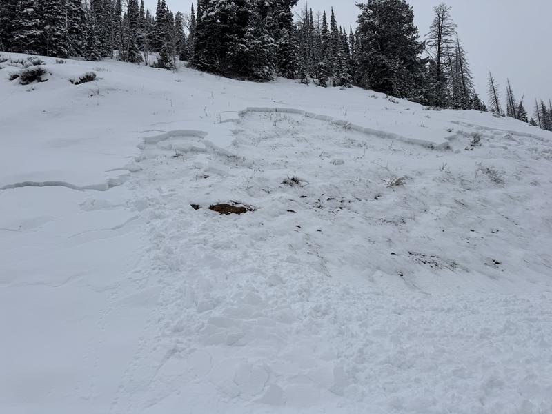 Large road cut on the side of Mill Hollow (Big Scary). We were the first to drive by around 9 am and when we came out it had been triggered assuming from adjacent snowmobile tracks or from the road. The slide deposited 4-5' of debris on the road.