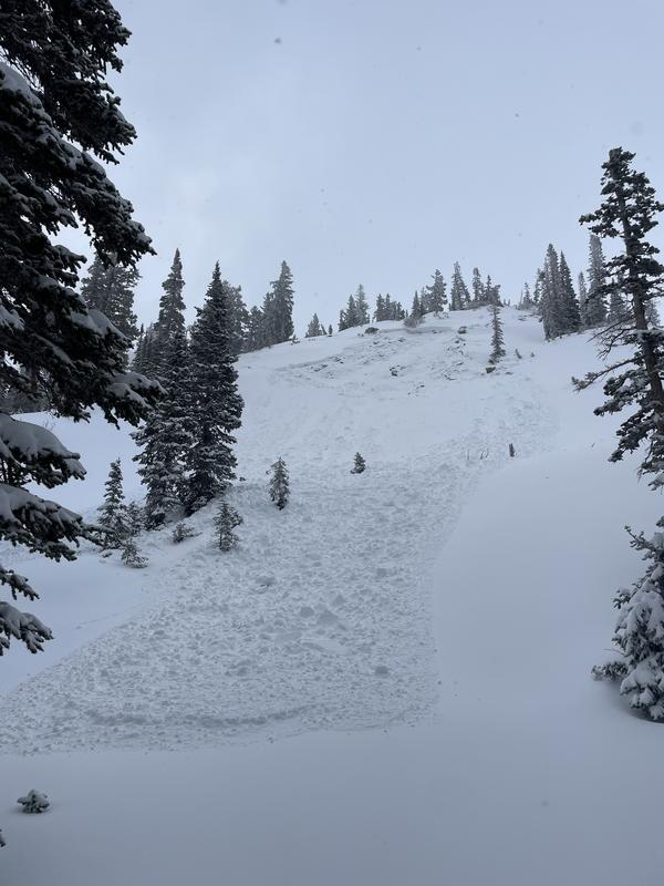 Remotely triggered this by skinning above and to the side of the pictured knoll; we felt a huge collapse and saw the result on our way up for a second lap. D1.5?