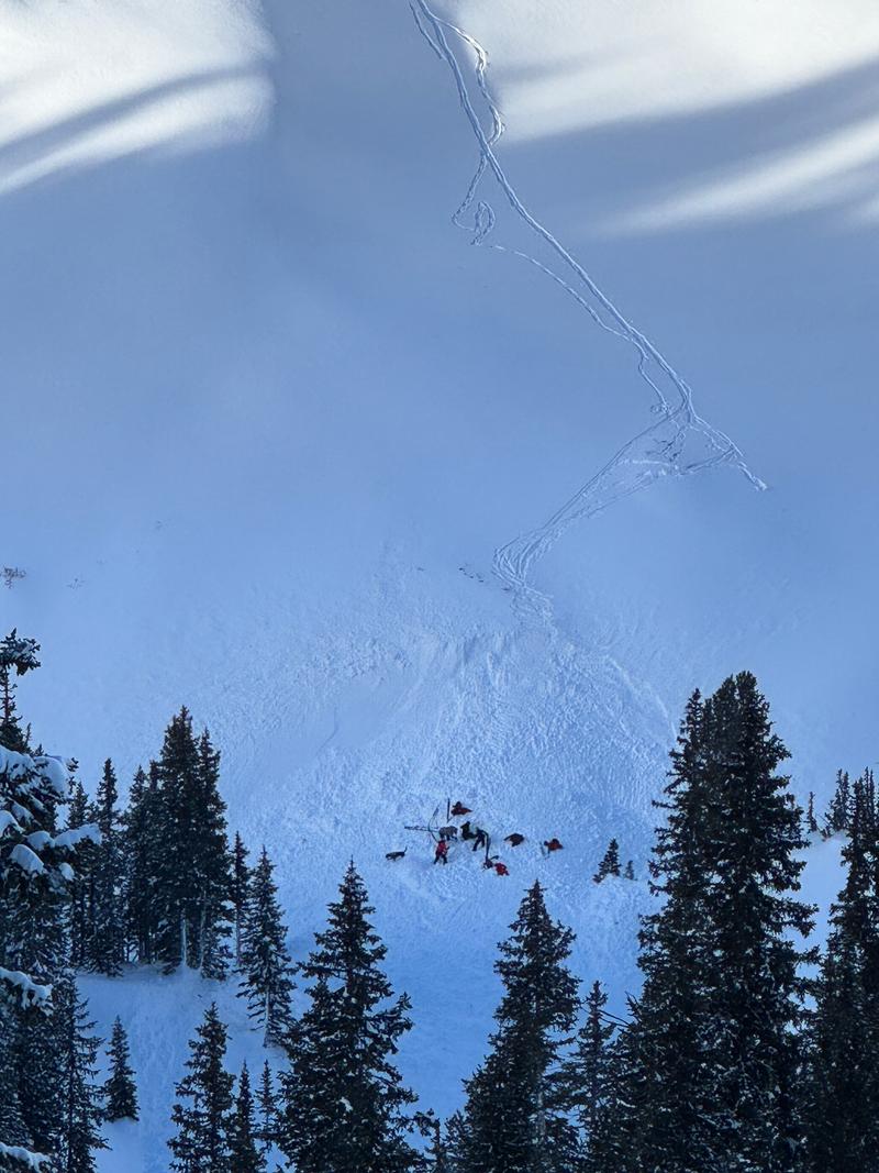 Due to unstable conditions in the surrounding avalanche terrain and the heightened risk of secondary slides, teams determined that initial avalanche mitigation would be required before safely deploying rescuers.