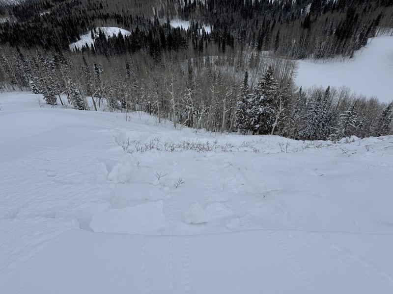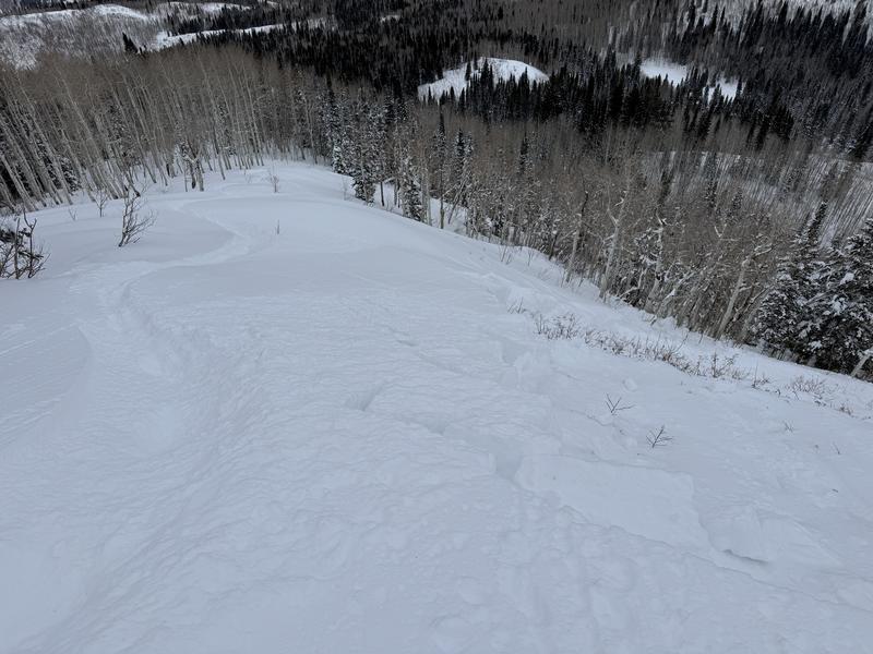We observed this avalanche on our approach to Murdock Peak. On our exit we were able to look at it more closely. It appears to have been triggered by this snowboard track (photo 2).