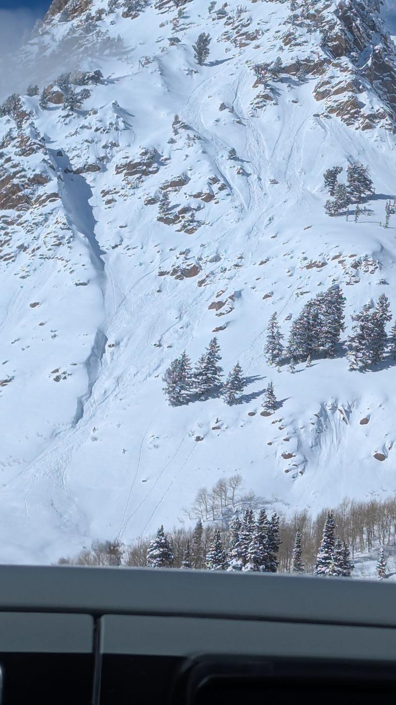 Solar radiation was intense today, South facing snow was starting to get heavy by noon. Watched this wet slide come down the lower S face of Superior.
