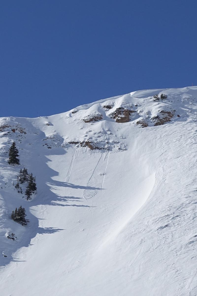 Observed 1230 hour 20250127 likely occurred this morning. Point release running on firm wind packed surface triggered by morning bright sun and a touch of heat.