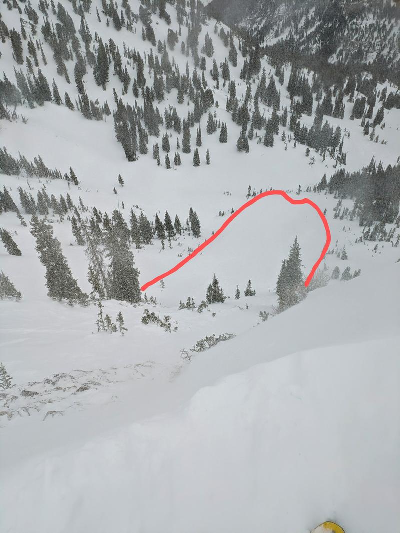 It looks like two dogs experienced a cornice fall trgrd windslab that did not dig deeper and only slid partway down the slope.
