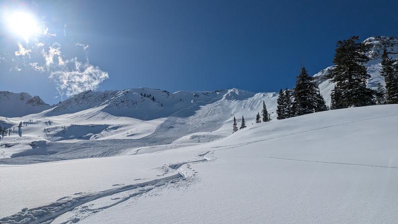 Crown height varied but the part near the skier was around 1' deep. Above in the deeper areas it looked maybe 3' or more. It matched the slide that occurred here 5 weeks ago.
