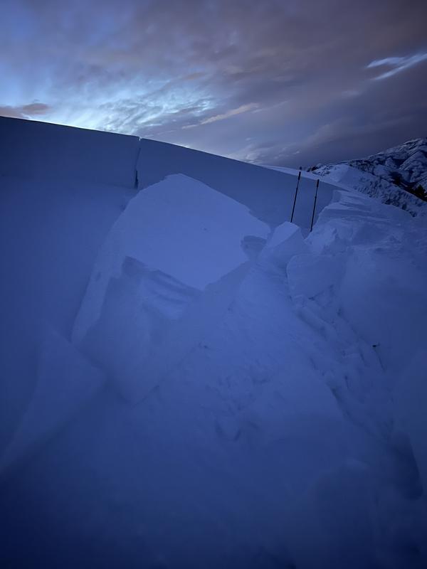 Aware of the danger, I was skiing a low angle ridge. I made a diagonal ski cut across the top of a short and obviously wind loaded convexity that I did not intend to ski. As I felt a collapse the slope fractured instantaneously and large blocks peeled off the ridge onto the bench below. The crown was approximately 1-4' deep and failed a few inches above the thick (2") early February rain crust where last week's low density snow had readily faceted in the cold temps. It was extremely difficult to hold an edge while skinning on this interface in Mt. Aire north facing terrain before the most recent storm, and moving around the bed surface felt equally slippery.