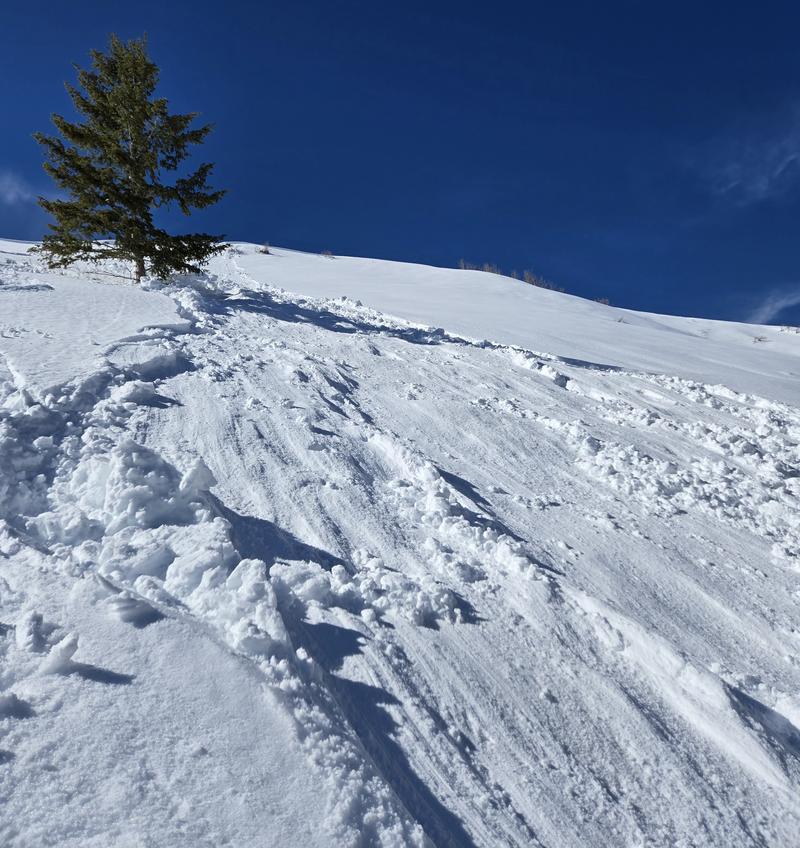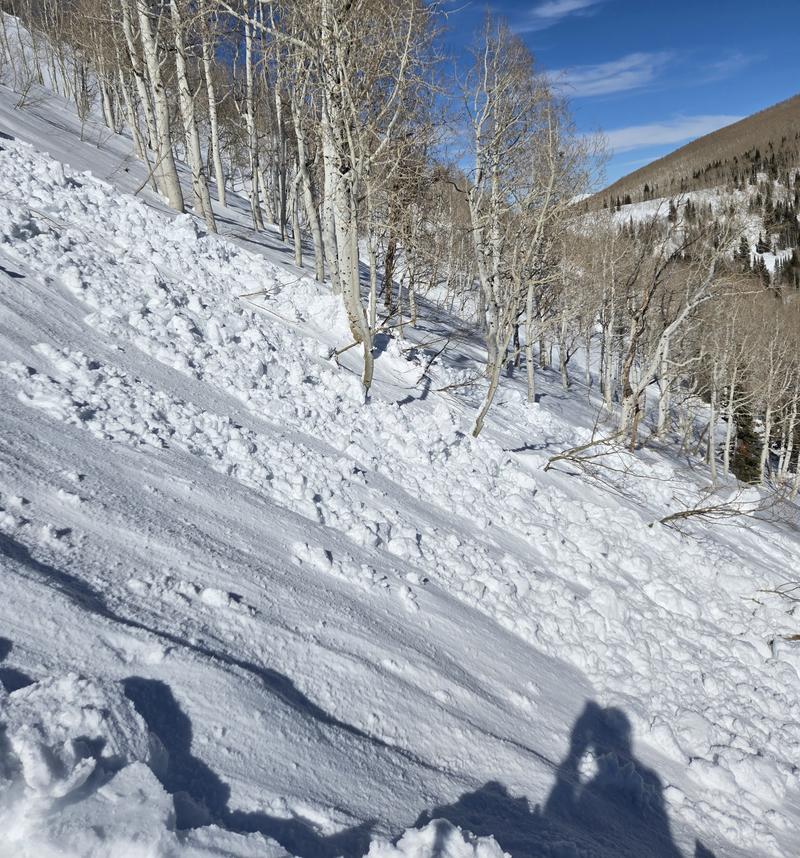 Verifying the forecast. Wet snow abound. Some of it moves when provoked. Some of it moved on it's own. Large chunks of debris. This slope avalanched on Saturday 2/15 this was newer snow sliding on and occasionally gouging into the old bed surface.