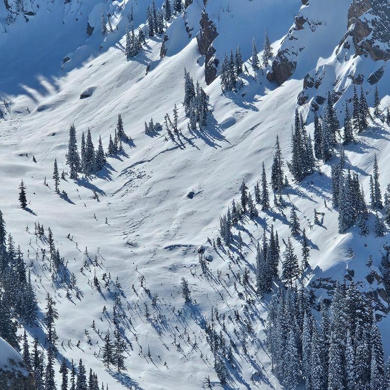 Walking up through Neff's it was apparent that the north facing terrain in this area underwent an extensive avalanche cycle during this last storm. Almost every path from the rideline on the south side of Neffs Canyon seemed to have avalanched. I would suspect that they broke within the new snow. A dust layer was present in this area and I did not see any sign of it on bed surfaces or in debris, that being said the avalanches had been somewhat filled in so hard to say. Most crowns looked to be about 1' deep D1-2.5. Even smaller paths in the trees ran in places I would not have expected.
