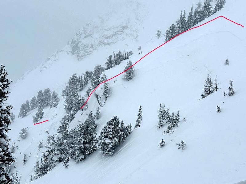 Wind/storm slabs were active mid-mountain in upper LCC on SE ridges. We had one break at the rider's feet on Toledo Chute (far lookers left line) that went a little bigger than we expected.