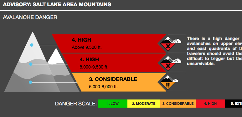 For those who just want a general overview of the avalanche danger, we provide the mountain graphic with just a short paragraph on the "Bottom Line" information. This section many tell you whether you can safely walk you dog on a mountain trail or snowmobile on a mountain road. The rest of the advisory gives more specific avalanche information you will need for more specific trip planning decisions. For a tutorial on danger ratings clickHERE.