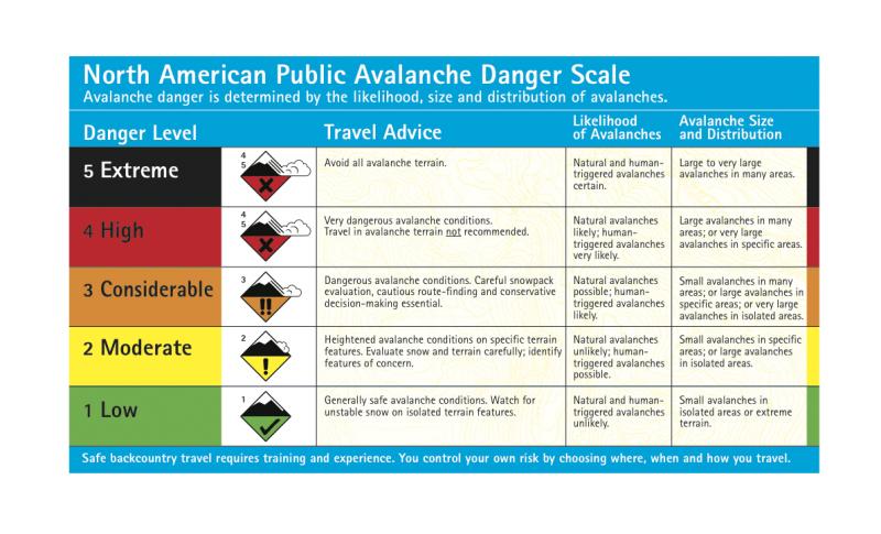You state if you asked the skier who tragically died what he thought the dangerwasthat day he'd probably say "HIGH". I would think, just like your class, he would have said "moderate". Ifthe danger that dayhad been forecasted "moderate-X" would his party then have recognized or decipheredthe "X" from the forecast? Would they have been on the lookout and assessed the "X" in the field and made a different choice? The "X" would need to be clearlydefined in the forecast. The addition of "Avalanche Size and Distribution" was / is initially vague at best. Extreme, high, considerable and moderate all state "large" or "very large". First off, until you published table 3.8 which uses data code D1 - D5 listing specific "Avalanche Destructive Potential" who would ever know the difference between large and very large? It's like what are very, very, very large kudos? Secondly, and most importantly is why would a largeavalanche occur in the moderate rating? Obviously, or obviouslynot so obviously,due to the "X". So,YES, publish the"X", define the"X". It will allow the user to be on the lookout for the"X"as defined in the forecastwhile conducting in the field assessment.