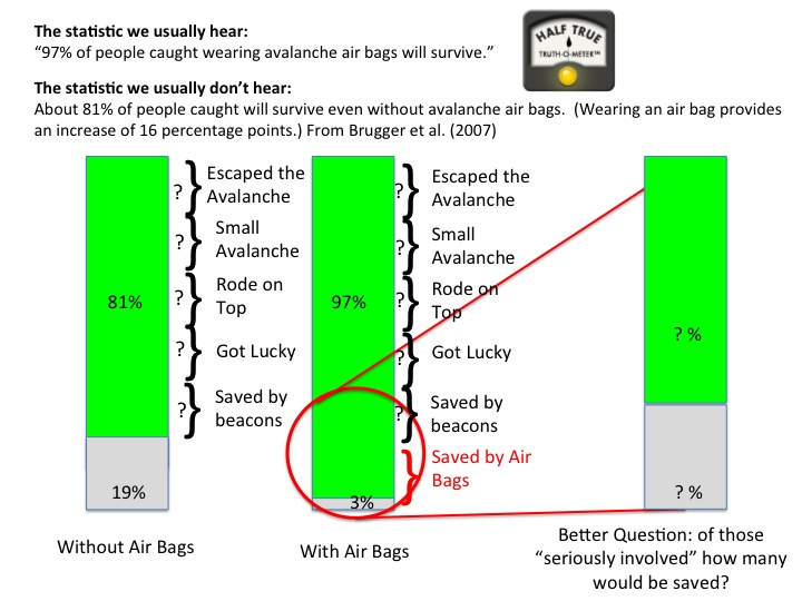 So…here I will try to explain where these various numbers come from and provide what I think is a more useful—and less misleading—sound bite when we talk about the effectiveness of avalanche airbags.