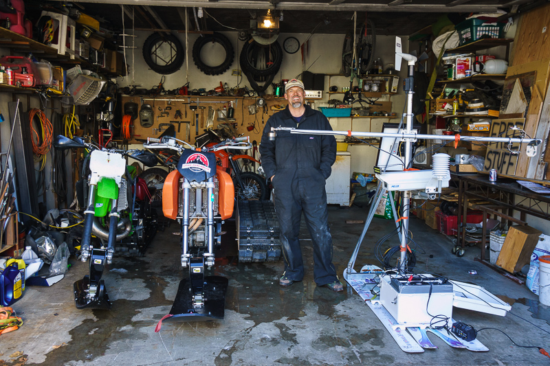 Here, on the left, he has a couple of motorcycles converted into snow bikes with a snowmobile track on the back and a ski in the front. He usually rides these instead of snowmobiles because they are so much more nimble and easier to get unstuck. On the right, he has built a prototype of a mobile weather station with technical expertise and collaboration with UDOT forecasters. The weather station measures snow height, wind, temperature, snow surface temperate and both incoming and outgoing heat energy and it also has a video camera. If that's not enough, he's our web monkey, plus a full time forecaster. Brett never ceases to amaze me.