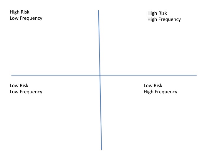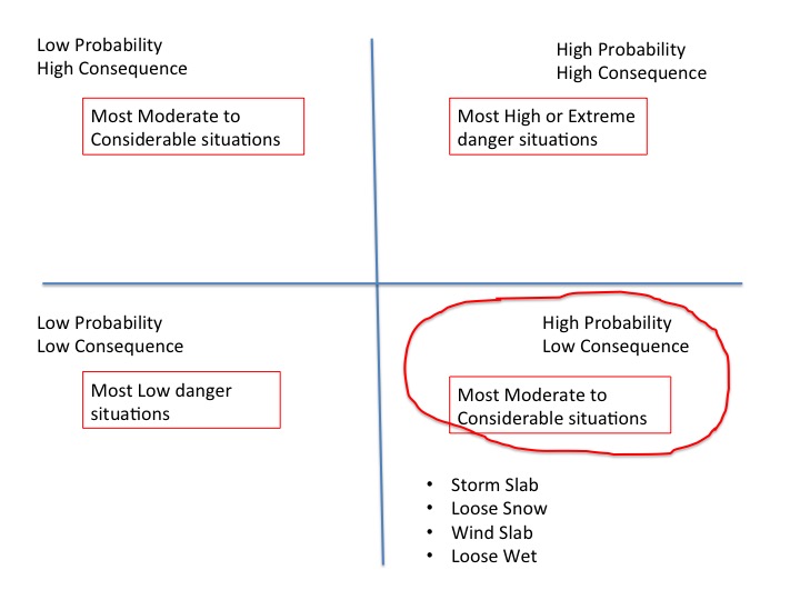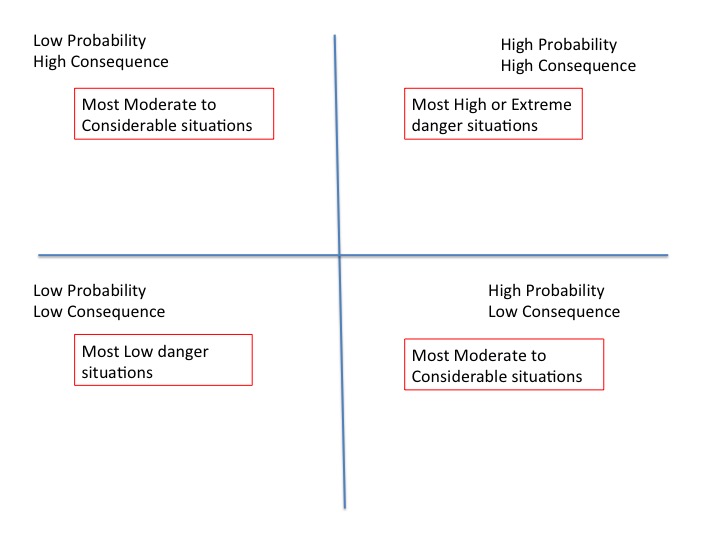 The next morning, I began by showing them a clip of risk reduction researcher Gordon Graham talking about what he calls High Risk, Low Frequency events. You should watch it. 15 minutes.I posted it here a couple of years go. You'll see below how he segregates the different types of incidents and where most of the accidents occur. He's addressing fire and police personnel, but he may as well be addressing snow safety professionals and very experienced backcountry skiers and riders. Follow the figures below to see how this applies.