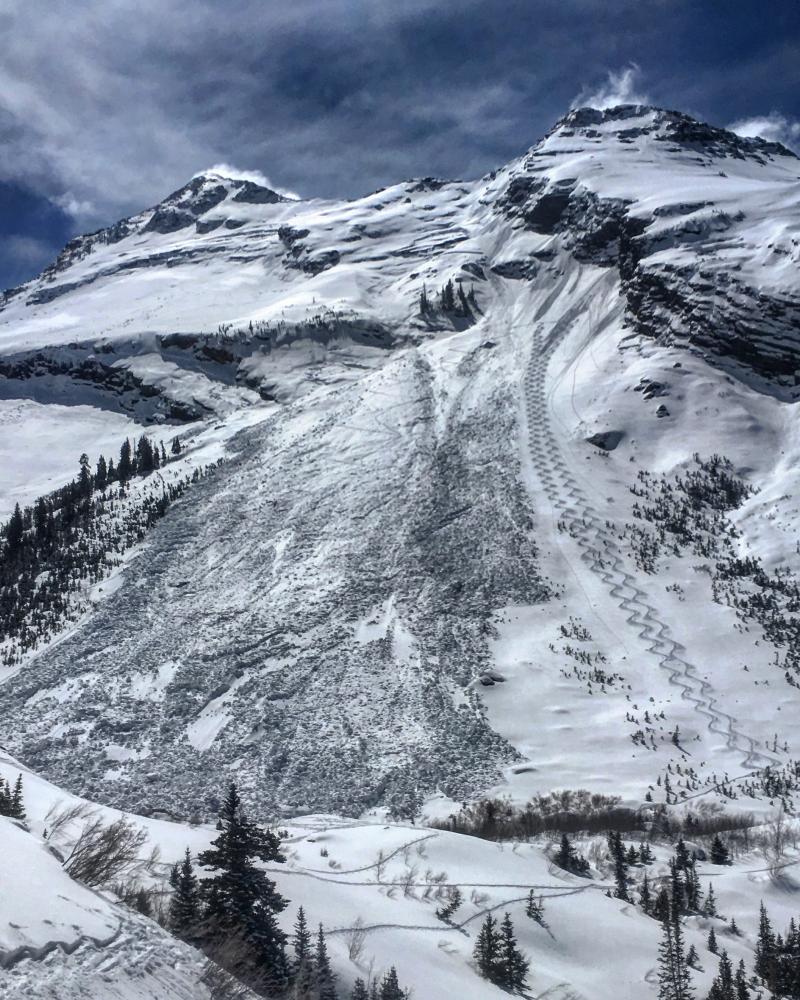 (Mark White photo from March 27, 2018. Someone, or rather something else beat him to first tracks. The Diving Board, Broads Fork of Big Cottonwood Canyon)