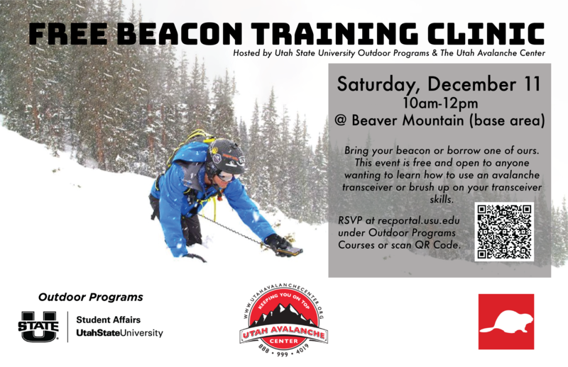 Join the Utah Avalanche Center, Utah State University, and Beaver Mountain to learn how to use an avalanche transceiver on Sat Dec 11 from 10am - noon