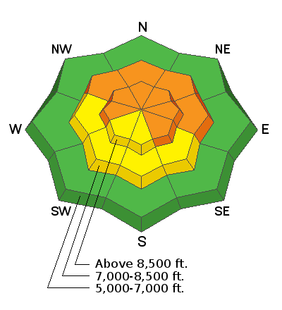 At upper elevations in the central and northern Bear River Range there is a around three feet of snow, which is only enough to cover the rocks on smooth grassy slopes. In the Logan Peak Area, the Southern Bear River Range, the front side (or western slope), and the Wellsville Mountains, the snow is even shallower and access and travel is more difficult.
