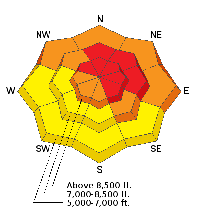 It's snowing this morning and more snow is expected today in the mountains, with 5 to 9 inches of accumulation possible. High temperatures at 8500' will be around 27°F, with continuing 20 mph+ west-northwest winds. The National Weather Service has continued a