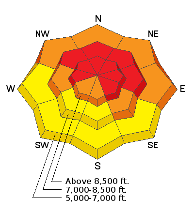 It's snowing this morning and more snow is expected today in the mountains, with 6 to 10 inches of accumulation possible. High temperatures at 8500' will be around 27°F, with continuing 20 mph+ west and southwest winds. The National Weather Service has continued a