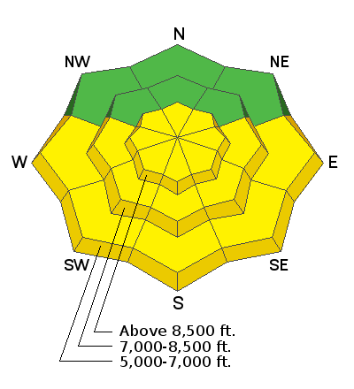 MODERATE: Heightened conditions exist at upper elevations where you could trigger shallow avalanches of wind drifted snow. Rapid warming from high angle sun will cause increasing danger and heightened wet avalanche conditions on sunny slopes. Natural wet avalanches are possible in some areas, so avoid travel in gullies and stay out from under steep sunny slopes.