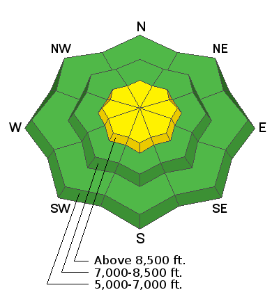 With the colder temperatures, the snow surface will be refrozen and, in steeper terrain, may pose "slide for life" conditions. An ice axe, crampons, ski crampons, and a helmet are all good options to have when traveling on firm snow.