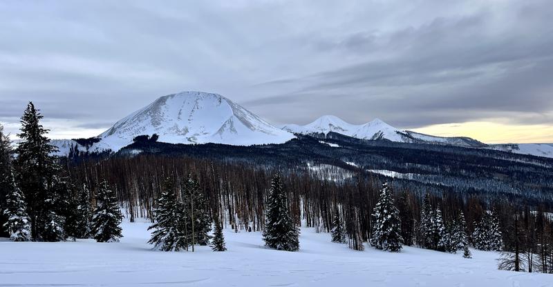 A CONSIDERABLE avalanche danger exists on steep, wind drifted slopes above treeline that face NW-N-NE-E. On these slopes, human triggered avalanches failing on a buried persistent weak layer are likely. Blowing and drifting snow has created a MODERATE danger for triggering an avalanche in wind drifted snow on all aspects near treeline and above. Backcountry travelers need to be on the lookout for fat, rounded pillows of wind drifted snow.