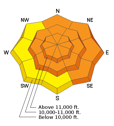 Monday night's over performing storm delivered up to 16" of new snow at 1.3" of water weight, and that's great news for our snowpack that is now at 116% of normal. The bad news is that the storm came in with wind, lots of it. First from the SW and then shifting to NW, winds blew a steady 20-30 mph with gusts into the 40's and 50's. They continued to blow most of the day yesterday tapering off in the afternoon. I don't have current data this morning but 700 mb (10,000') winds over the area are at 20 mph from the NW. Today look for increasing clouds as a storm system moves through to the north. 10,000' temps will be in the high teens, but continued light to moderate, NW winds will create wind chill values well below zero.