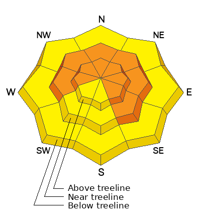 A MODERATE avalanche danger exists on all aspects below treeline, and on steep slopes facing SW-S at all elevations. This includes the possibility for loose, wet snow avalanches on sun exposed slopes as the day heats up.