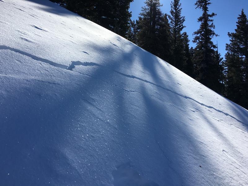 The avalanche danger remains MODERATE on steep slopes that have recent deposits of wind drifted snow. Wind slabs continue to be found in unusual places on slopes facing W-S-SE, and at mid elevations. Avoid slopes with a smooth rounded appearance or that show signs of instability such as cracking in the snow surface. There also remains an isolated, or MODERATE danger for avalanches stepping down 2'-4' deep into buried, persistent weak layers of loose, sugary, faceted snow. Northerly facing slopes with steep, rocky, and more radical terrain are the most suspect for this type of avalanche.