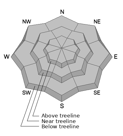identified last week, and overall, the underlying snowpack is dense and supportable. But with the upcoming cold dry spell, I expect the snowpack to become loose and sugary, leading to poor snowpack structure with a weak base down the line. Strong southerly winds have stripped south aspects, while alternately drifting snow on to northerly facing slopes. Be on the lookout for unstable slabs of wind drifted snow in these areas. Wind slabs usually stabilize within a few days but remain cautious of areas that have a smooth, rounded appearance or that sound hollow underneath. Low snow conditions also continue to create a hazard with an average depth of around 18" at 10,000'. Tread lightly out there!