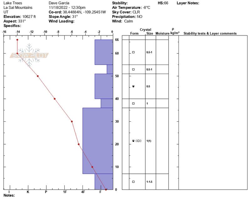 This snow profile from Friday 11/18 details a cold, weak snowpack on a northerly aspect.