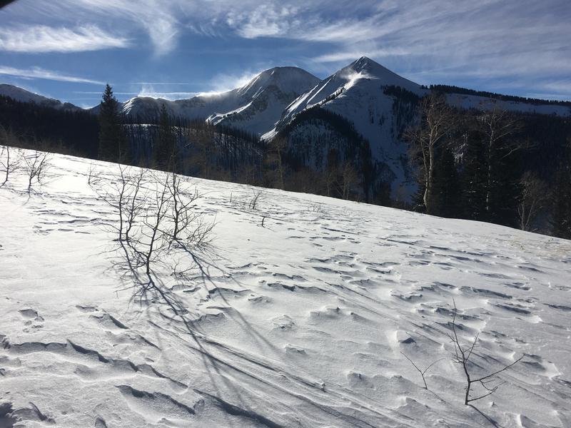 Blowing and drifting snow has kept the avalanche danger at CONSIDERABLE on steep, mid to upper elevation terrain that faces NW through E and human triggered soft slab avalanches, up to 2' deep failing on a buried persistent weak layer are likely in these areas.