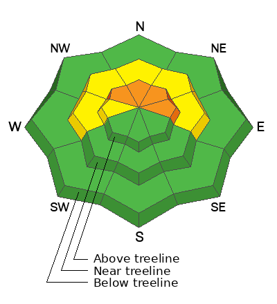 A MODERATE danger exists at mid-elevations on steep slopes facing W-N-E.