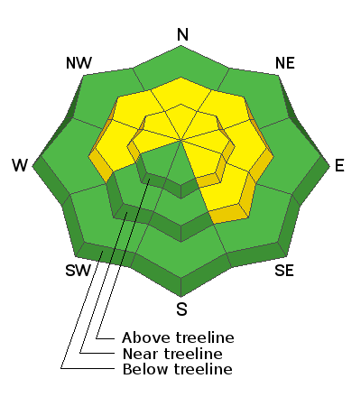 The avalanche danger is MODERATE this morning but could reach CONSIDERABLE later today. New and wind drifted snow is beginning to pile up on a variety of old and weak snow surfaces. Backcountry travelers need to be alert to changing conditions today. Be suspicious of steep slopes that have more than about 6" of new snow and avoid steep slopes with fresh deposits of wind drifted snow.