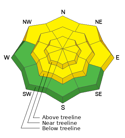 Although it is becoming less likely, very deep and dangerous avalanches failing on a persistent weak layer remain POSSIBLE on slopes that face W-N-E-SE. The danger is most prominent on slopes that face NW-N-NE-E and you are most likely to trigger one of these avalanches in thin snowpack areas.
