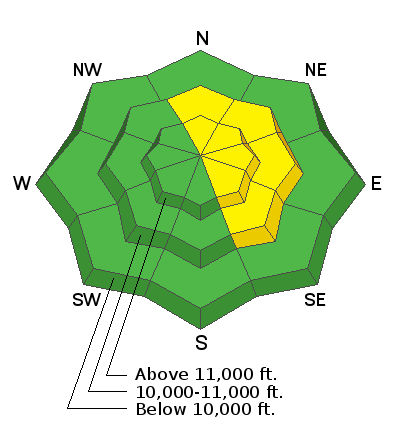 It's becoming more difficult to trigger an avalanche but an isolated or MODERATE danger for human triggered avalanches involving wind drifted snow still exists. The danger is greatest on upper elevation slopes facing N-NE-SE. Wind drifts are recognizable by their smooth, rounded appearance, and they may sound or feel hollow like a drum. In areas where the underlying snow is shallow and weak, a triggered wind drift may cause a deeper and more dangerous avalanche. Choose terrain carefully and avoid steep slopes with recent deposits of wind drifted snow.