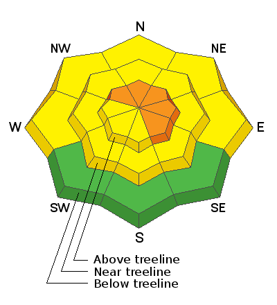 The avalanche danger remains CONSIDERABLE on steep slopes above treeline facing NW-NE-SE, and deep and dangerous human triggered avalanches failing on a buried persistent weak layer are likely in these areas. Recent deposits of wind drifted snow have added additional stress in these areas. Avalanches can be triggered from a distance and break wider and farther than expected. A MODERATE avalanche danger exists near treeline and below. Generally, LOW danger can be found on low elevation, south-facing terrain.