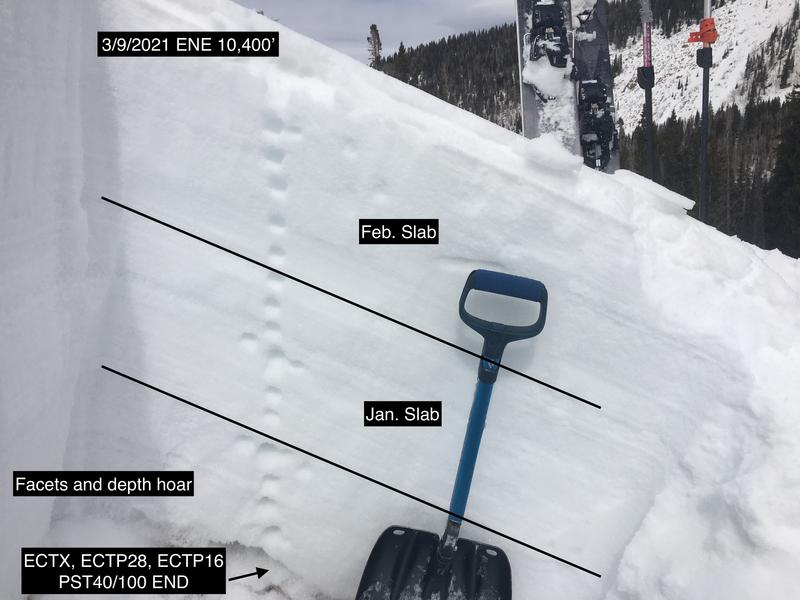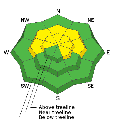The avalanche danger is MODERATE but expect a rising danger over the next few days. Be alert to changing conditions and increasing signs of instability such as blowing and drifting snow and cracking in the snow surface. Strong southerly winds are creating fresh deposits of wind drifted snow on northerly aspects near and above treeline. As more snow accumulates, drifts will become more sensitive and more widespread. Look for them on the leeward sides of ridge crests and terrain features such as gully walls and sub ridges and avoid steep slopes with recent deposits of wind drifted snow. On steep slopes facing NW-N-E-SE it is still possible to trigger an avalanche on a buried persistent weak layer. Thin snowpack areas near rock outcroppings and along slope margins are likely trigger points. Avoid steep convexities and blind break overs.