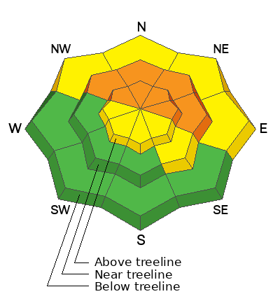 Today the avalanche danger is CONSIDERABLE. Human triggered avalanches are LIKELY on steep slopes with recent deposits of wind drifted snow near treeline and above that face NW-N-NE-E. In some areas, thick slabs of drifted snow exist over buried weak layers where you can trigger a deeper and more dangerous avalanche. Avoid steep, wind loaded, northerly aspects. Shifting winds will create shallow, soft slabs of wind drifted snow on Southerly facing slopes where you will find a MODERATE danger.