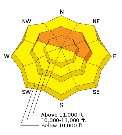 Snowpack: Powder conditions have returned to the La Sal Mountains but new and wind drifted snow is piling up on a fragile snowpack that is comprised largely of weak, sugary, faceted snow. Weak snow can be found on all aspects and with up to 2' of new snow, all slopes steeper than 35 degrees should be considered suspect. The greatest danger exists however on steep, wind loaded slopes that face the north half of the compass where the underlying snowpack is exceedingly weak. I know we've been in a powder drought for awhile, but now is the time to temper your enthusiasm.
