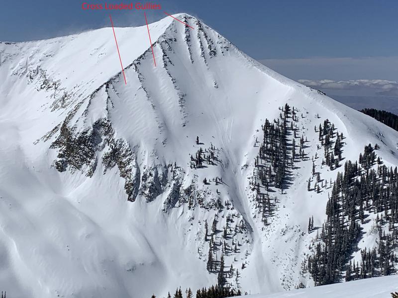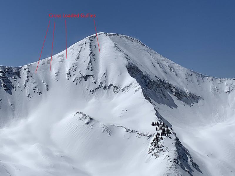 Strong and gusty Northerly winds have created a CONSIDERABLE avalanche danger on all aspects above treeline. Be on the lookout for fresh, unstable drifts of wind deposited snow. Fresh drifts are easily recognized by their smooth rounded appearance. Cracking and hollow sounds are sure signs of instability. Avoid steep wind drifted slopes today.