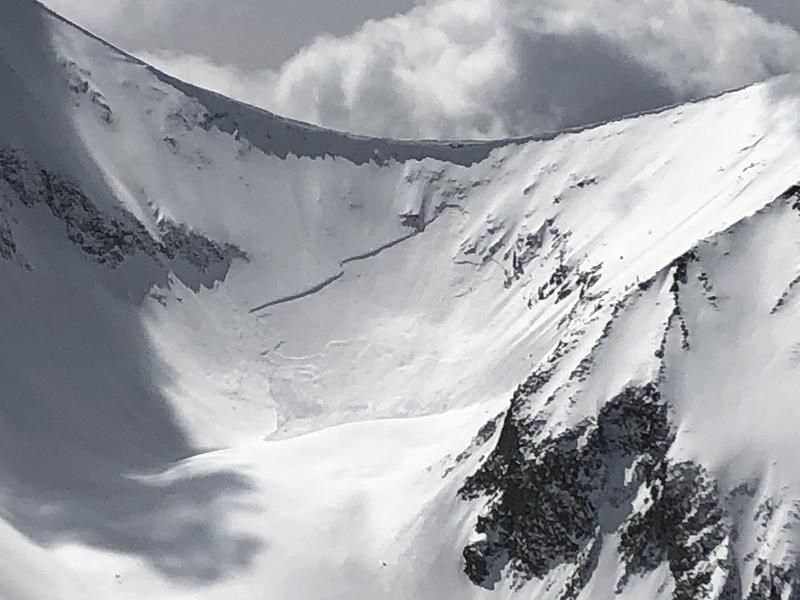 Red Snow Cirque last Saturday. With a similar snowpack structure over here, we need to be continually aware of the potential for this type of avalanche.