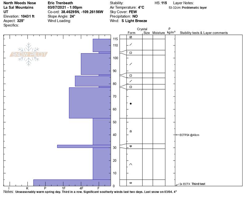 - Persistent Weak Layer Deep and dangerous human-triggered avalanches failing on a layer of sugary, faceted snow remain possible primarily on steep slopes near and above treeline that face NW-N-E-SE. This is becoming a low probability/high consequence situation. Shallow areas along slope margins and near rock outcroppings or sparse trees are potential trigger points.