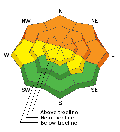 The avalanche danger remains CONSIDERABLE on slopes facing NW-N-NE-E. Human triggered avalanches are likely failing on a buried persistent weak layer 2-3 feet below the surface. This weak layer can also be found on slopes facing W and SE but sun and warm temperature last week have made avalanches on this weak layer less likely. A MODERATE avalanche danger exists on these slopes.