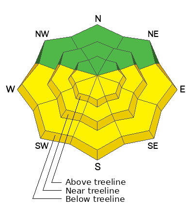 Strong Southerly winds, warm temperatures, and intense April sun are taking a toll on the snowpack. Yesterday winds blew out of the SSE in the 30 mph range all day, stripping windward slopes in the alpine. We found high elevation North faces to have the best snow. Lose some elevation, and the skiing gets slow and manky. Solar aspects will be crusted over this morning. You can travel safely on the solars early in the day, but as things heat up you will want to move to more Northerly aspects to avoid wet avalanche activity. You may encounter shallow, soft slabs of wind drifted snow in isolated areas on slopes with a Northerly or Easterly component to their aspect.