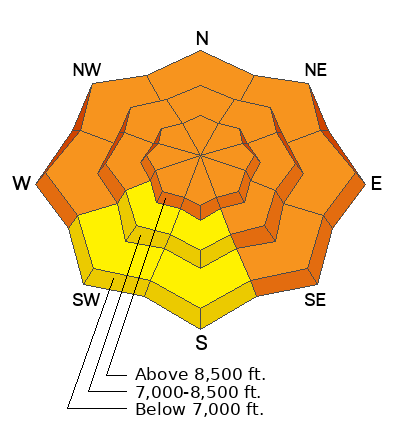The avalanche danger is CONSIDERABLE at the upper elevations and lower and mid-elevation slopes facing west through north through southeast. The danger is MODERATE on lower and mid-elevation slopes facing south and southwest.