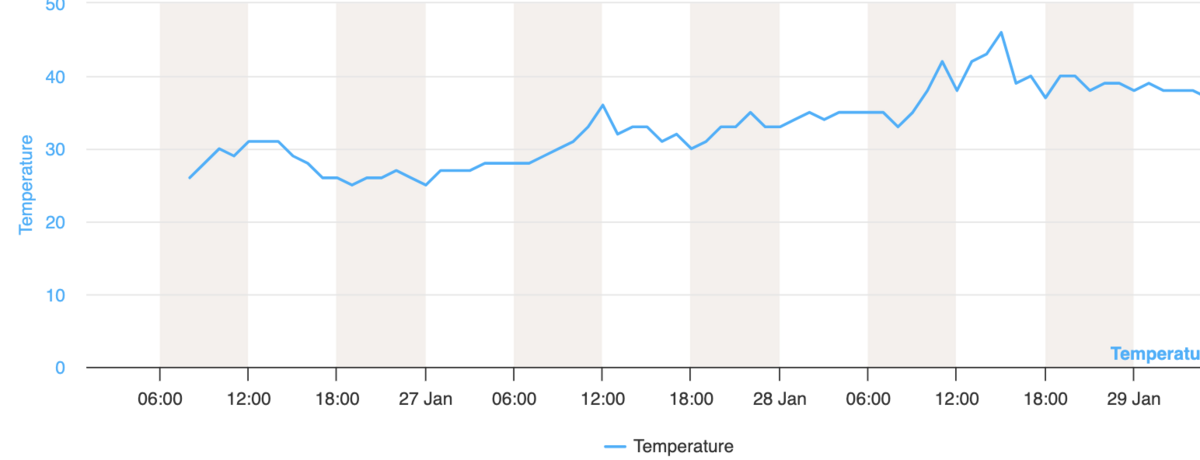 The January thaw: Note the increasing highs and lows the last couple of days: This is the Ben Lomond site in the north fork at 7700'. It's in what I call the "thermal belt": not as cold as the highest elevations and not subject to cold air pooling down low in the basins and drainages.