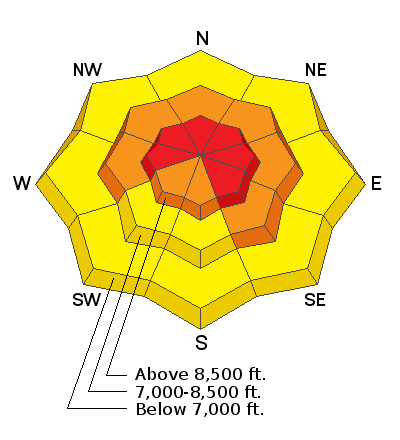 The avalanche danger is HIGH at upper elevations, and CONSIDERABLE at mid elevations, facing west, through north, through southeast which are wind-drifted. Upper elevations facing south and southwest have a CONSIDERABLE hazard. Avalanches are still possible on southerly aspects at mid elevations, as well as at low elevations where the danger is MODERATE.