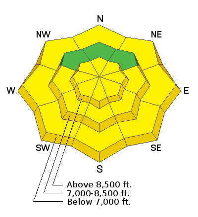 Side Note #1: the aspect/elevation rose can be misleading as it applies to topography. Mid-elevation ridgelines can be significantly more wind loaded and dangerous than mid-slopes below terrain with greater relief...even though they are the same elevation. In other words, terrain above North Ogden Divide (at 8200') can be way more wind loaded than mid-slope along the Ben Lomond headwall.